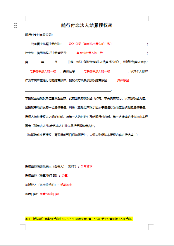 銀豹間連1非法人授權(quán)書